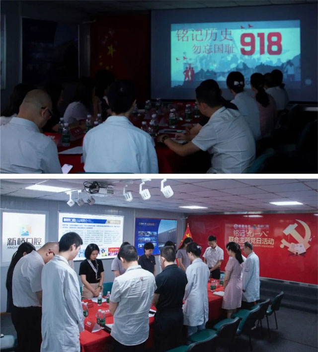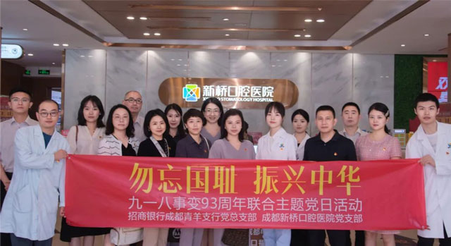 9月18日,在“九一八事變”93周年之際,成都新橋口腔醫院黨支部聯合招商銀行成都青羊支行黨總支部舉辦了“銘記‘九一八’聯合主題黨日活動”。