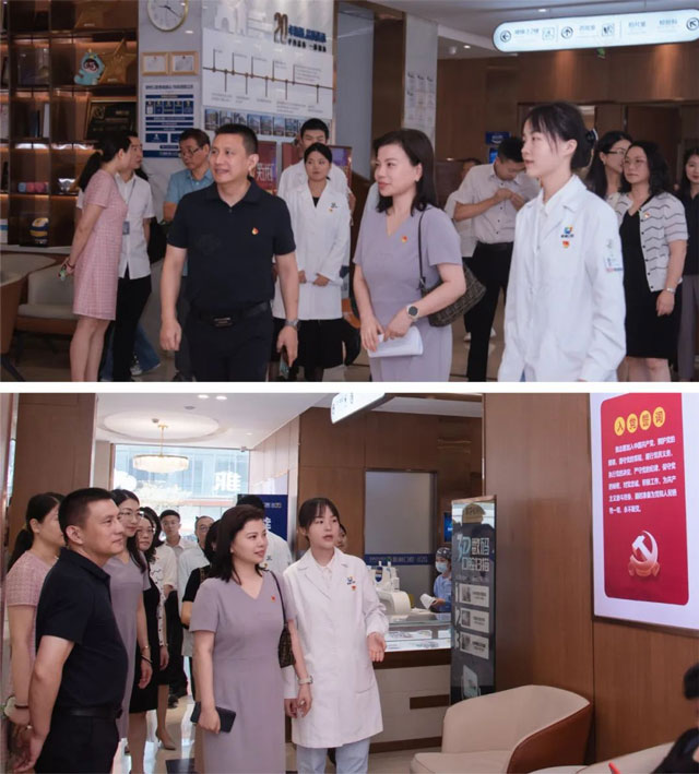 在成都新橋口腔醫院行政院長孫孝華同志、成都新橋口腔醫院黨支部書記蔣越同志的帶領下,雙方黨員共同參觀了成都新橋口腔醫院黨支部黨務公示欄、黨建活動室、黨建文化陣地等區域,并通過座談的形式展開學習和交流。