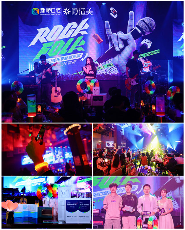 10月12日晚,新橋口腔“ROCK&FOLK live house 狂歡夜”正牙會(huì)員答謝活動(dòng)在成都夜文化地標(biāo)地九眼橋歡樂上演。新橋口腔隱形正牙會(huì)員代表及醫(yī)生代表齊聚打卡,歡歌小酌笑侃人生,一起共享音樂盛宴!
