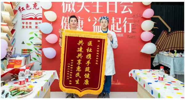 活動尾聲,新橋口腔西寧院區向虎臺街道虎臺社區贈送了一面寫有“醫社攜手筑健康,共建共享惠民生”的錦旗,以此感謝社區對公益事業的大力支持。