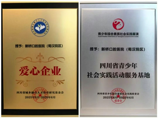 新橋口腔成都蜀漢院區(qū)負責人表示:“此次獲授‘四川省青少年社會實踐活動服務基地’與‘愛心企業(yè)’稱號,不僅是對我們多年來深耕青少年健康教育、積極踐行企業(yè)社會責任的高度認可,更是一份沉甸甸的鞭策。我們倍加珍視這份榮譽,并將以此為全新起點,持續(xù)發(fā)揮口腔醫(yī)療領域的專業(yè)特長與平臺資源優(yōu)勢,讓青少年社會實踐活動與健康科普服務更精準契合成長需求;同時,我們也將不斷探索‘寓教于醫(yī)、寓教于樂’的協同育人新模式,以切實行動為培養(yǎng)身心健康、全面發(fā)展的時代新人貢獻更多力量。”