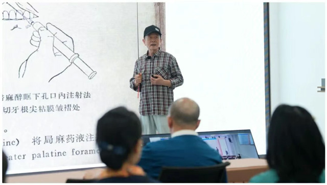 作為口腔頜面外科專家,余自能教授對(duì)麻醉要求極高,他認(rèn)為如果醫(yī)生的麻醉注射位置不精準(zhǔn),患者在治療時(shí)感覺疼痛,會(huì)帶來非常不好的就醫(yī)體驗(yàn)。多年來,他力求讓患者在打麻藥、治療中、治療后的整個(gè)過程中幾近無痛。他也希望通過本次授課,向臨床醫(yī)生傳授全程無痛的口腔局部麻醉技術(shù)。